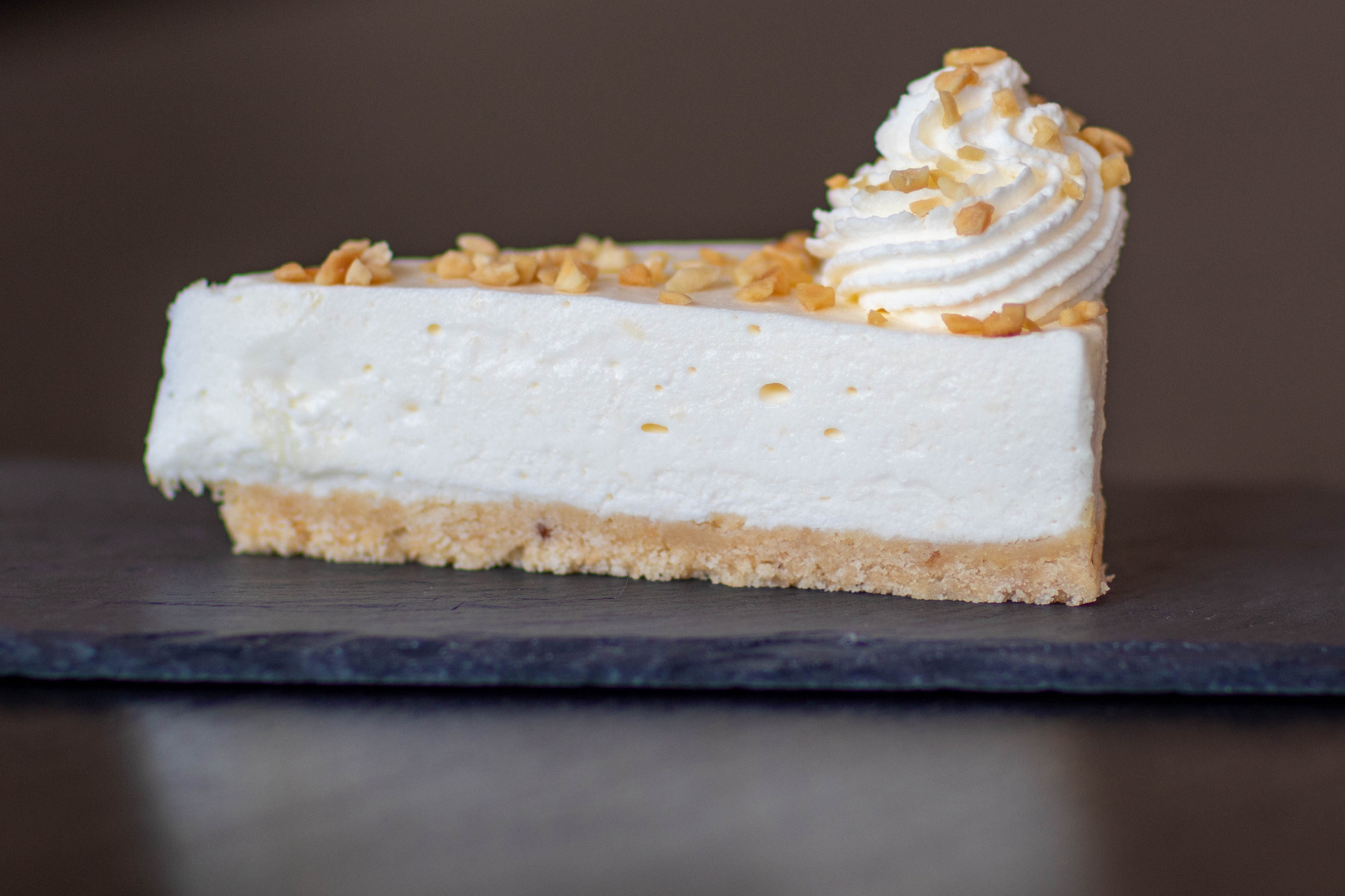 Lučina dezert na máslových sušenkách. Jemný lučinový krém na křehkém sušenkovém základu, zdobený podzemnicí.