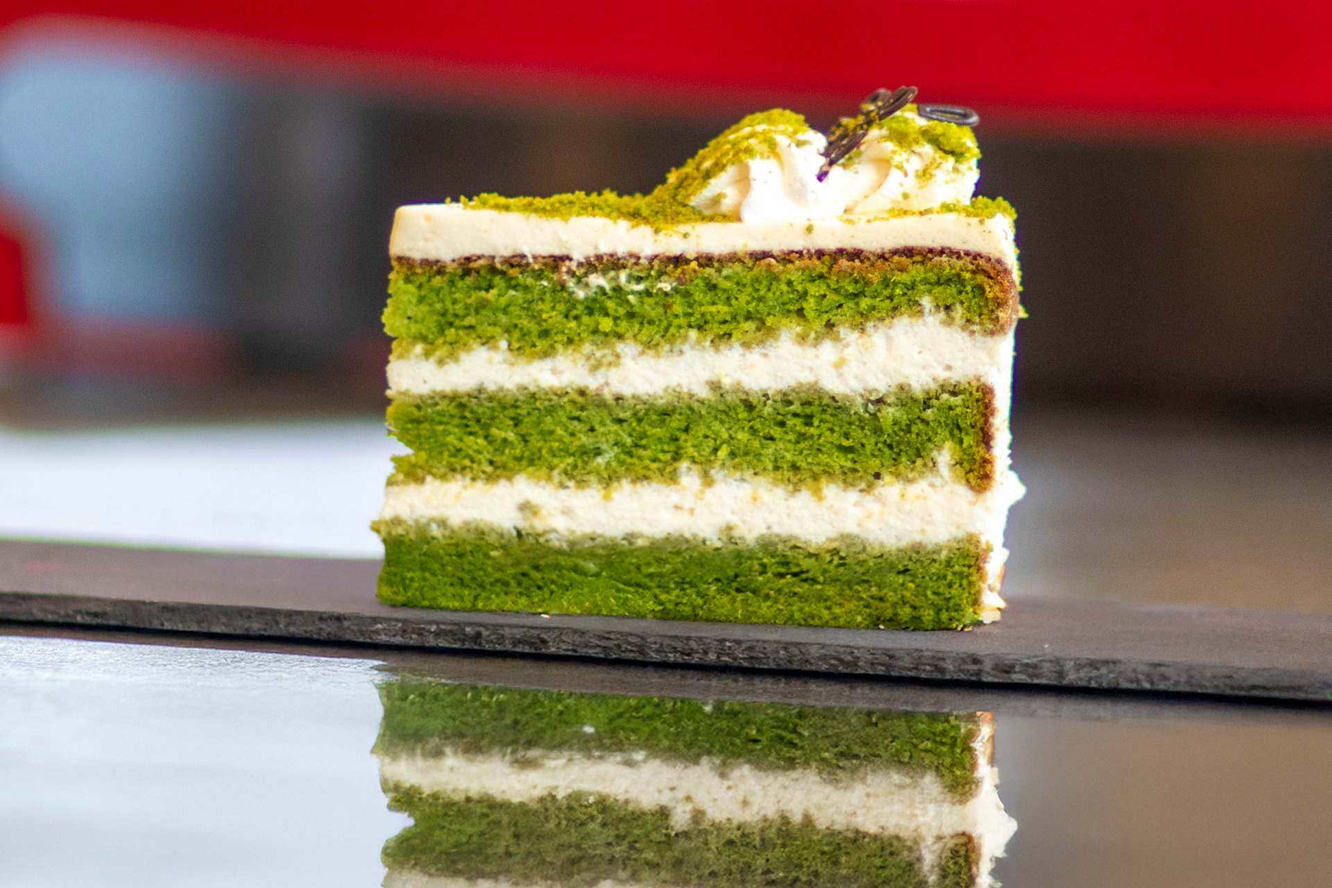 Špenátový korpus s lahodným tvarohovým krémem a kiwi- želé. Perfektní k šálku vaší oblíbené kávy.